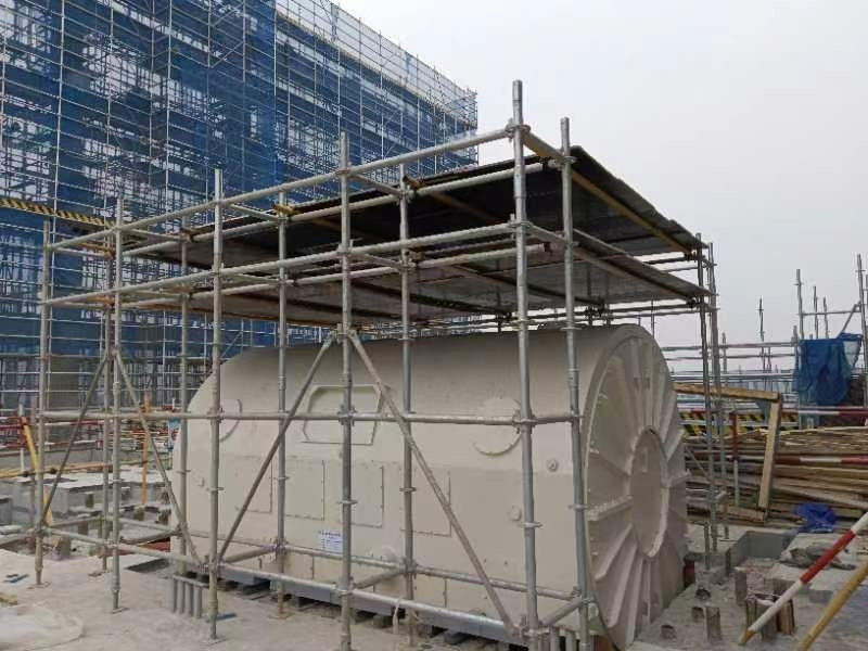 吊裝過程中,各工程技術人員、安全監(jiān)督人員全程監(jiān)護,作業(yè)人員嚴格執(zhí)行吊裝方案的工藝流程、施工方法及安全技術措施,經(jīng)過各方的共同努力下,定子順利放置在發(fā)電機基礎上部,穩(wěn)穩(wěn)就位,整個過程指揮有力,操作精準,安全有序。